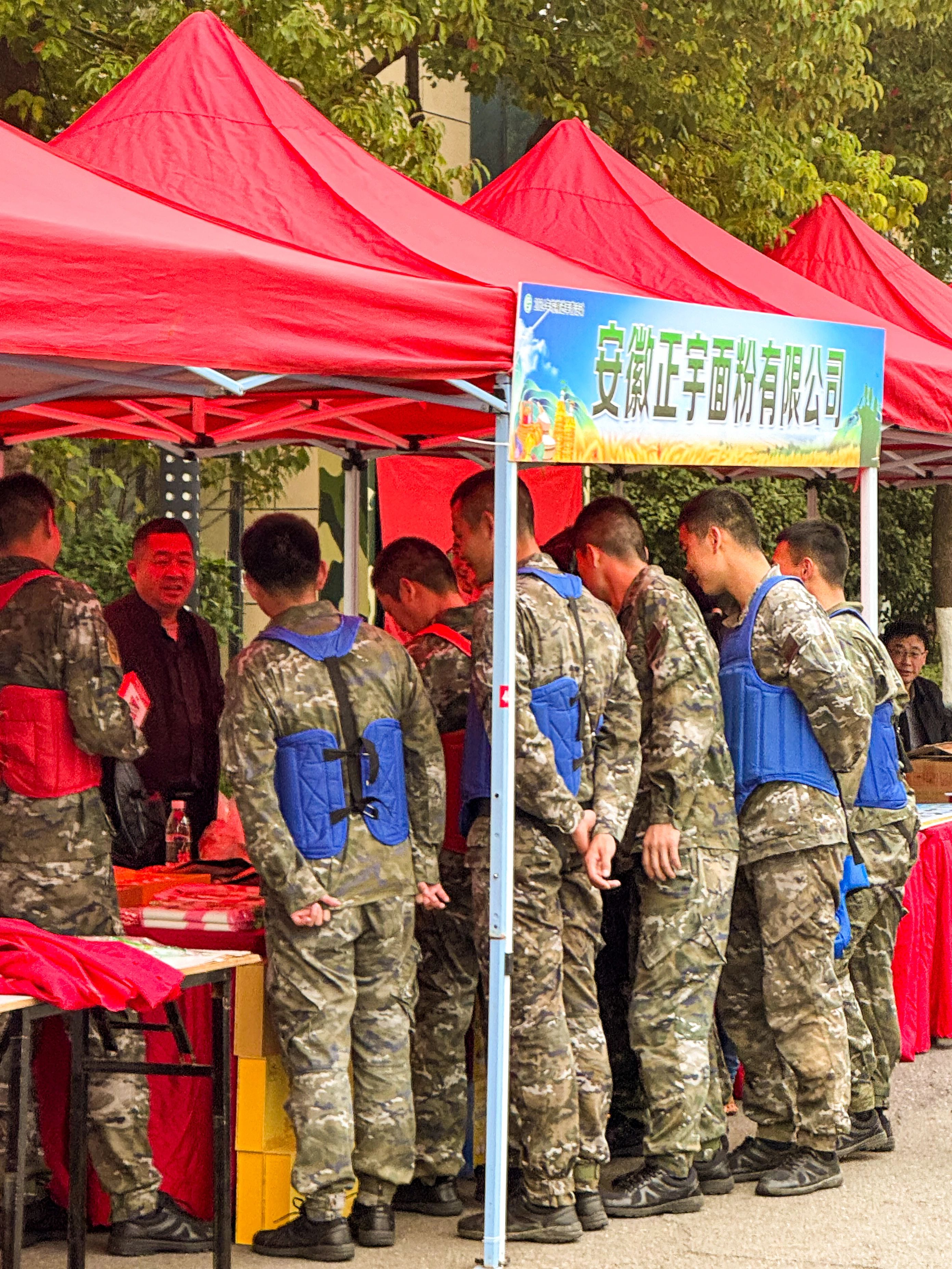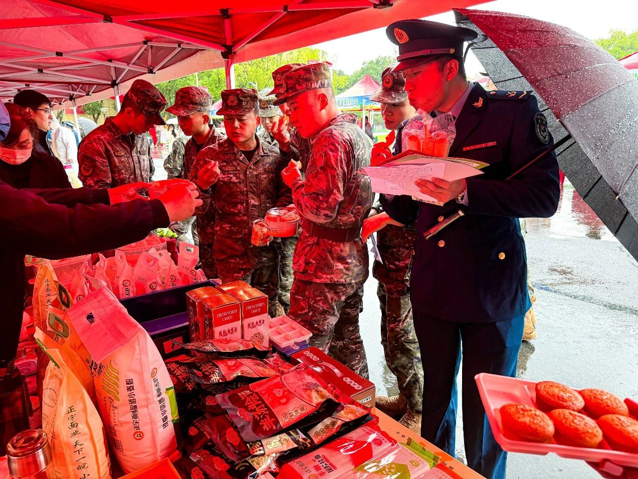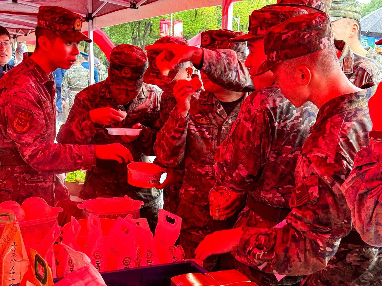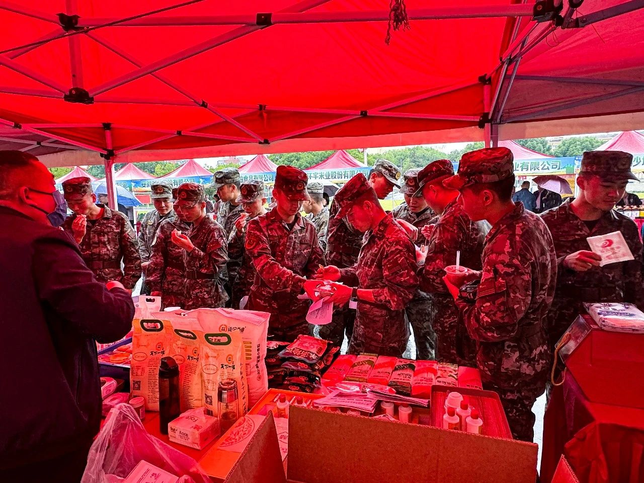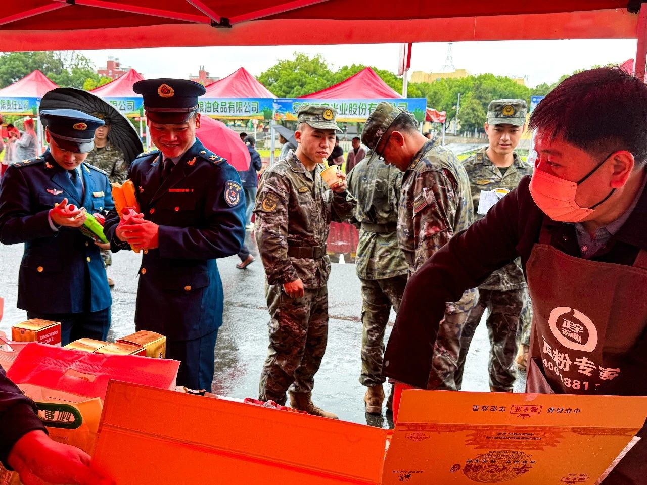 正宇集團展臺前人頭攢動,人民子弟兵們紛紛前來參觀正宇集團獨具特色的富硒面粉、本草醋、非油炸方便食品等產品。同時在品鑒了現場蒸制的包點、餃子之后贊不絕口,對產品的品質、口味等給予了極高的評價。