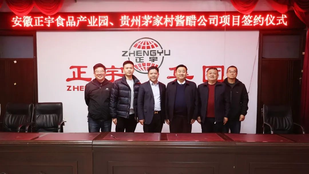 期間,雙方就正宇食品產(chǎn)業(yè)園未來發(fā)展趨勢進(jìn)行了交流探討。 會上,雙方就正宇食品產(chǎn)業(yè)園項目基本情況、招商進(jìn)展、未來產(chǎn)業(yè)發(fā)展趨勢等方面進(jìn)行了深入的交流洽談。 雙方經(jīng)過深入交流與探討,最終達(dá)成合作意向,現(xiàn)場簽約項目合作。 (現(xiàn)場簽約) 貴州茅家村醬醋有限公司 貴州省仁懷市茅家村醬醋有限公司是茅臺鎮(zhèn)一家非物質(zhì)食品文化企業(yè),充分發(fā)掘貴州茅臺鎮(zhèn)的醬文化,其產(chǎn)品“茅家村·醬香三寶”在生產(chǎn)技術(shù)、釀造配方,古法獨(dú)道。以最有醬味的茅臺古鎮(zhèn)為根,以有“美釀河”之稱的赤水河為本,在與黔北地域文化和民族文化的長期交流、滲透、競爭、融合的過程中,逐步創(chuàng)立了獨(dú)特的醬香醋釀制技藝體系,成為人們美味之源,同時也成為遵義市、仁懷市非物質(zhì)文化遺產(chǎn)項目。其連續(xù)三屆端午節(jié),采曲采藥祭祖師大典暨世界吉尼斯天下第一壇活動,匠心獨(dú)運(yùn),被中央電視臺發(fā)現(xiàn)之旅全面報道。 產(chǎn)業(yè)園項目簡介 “正宇食品產(chǎn)業(yè)園”(以下簡稱“園區(qū)”)作為渦陽縣政府重點(diǎn)打造的大型食品生產(chǎn)加工產(chǎn)業(yè)園集聚區(qū),園區(qū)規(guī)劃總占地2000畝,位于渦陽縣龍馬工業(yè)園區(qū),主要從事面粉加工、食品生產(chǎn)加工等,圍繞五大功能區(qū),即糧食儲備區(qū)、面粉加工區(qū)、食品加工區(qū)、倉儲物流區(qū)、商務(wù)區(qū)等上下游產(chǎn)業(yè)鏈,配套齊全,形成一體化產(chǎn)業(yè)鏈條布局,推動綠色、有機(jī)、健康、高端的食品加工產(chǎn)業(yè)集群化發(fā)展,消費(fèi)者享受從田間到餐桌的全過程可溯源服務(wù),保障產(chǎn)業(yè)后續(xù)發(fā)展壯大。 為了更好的強(qiáng)鏈、補(bǔ)鏈、延鏈,正宇集團(tuán)以“麥小六”為主題,即一粒麥子長出六個產(chǎn)業(yè),大力發(fā)展種植業(yè)、面粉加工業(yè)、食品加工業(yè)、醋產(chǎn)業(yè)、豆產(chǎn)業(yè)、農(nóng)業(yè)觀光業(yè)六大產(chǎn)業(yè),正宇集團(tuán)未來五年將充分發(fā)揮各項資源優(yōu)勢,打造百億級食品產(chǎn)業(yè)園。