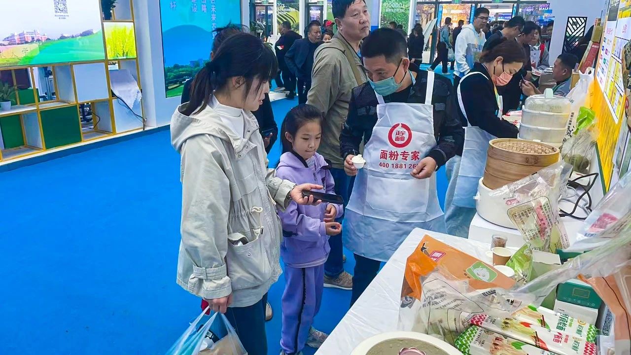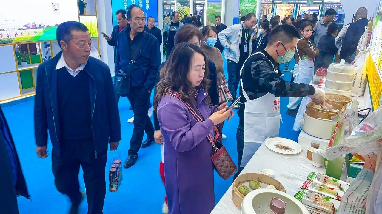 正宇集團展臺前熙熙攘攘,參展觀眾對正宇集團獨具特色的富硒面粉、本草醋、非油炸方便食品等產品表現出了極大的興趣。而在品鑒了現場蒸制的包點、餃子之后更是贊不絕口。